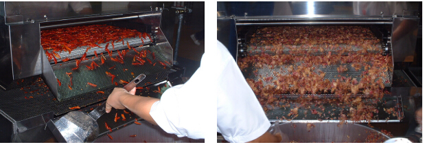 輸送的產物在油炸機頂用中心的反轉展轉攪拌,避免油炸不平均的環境產生。
